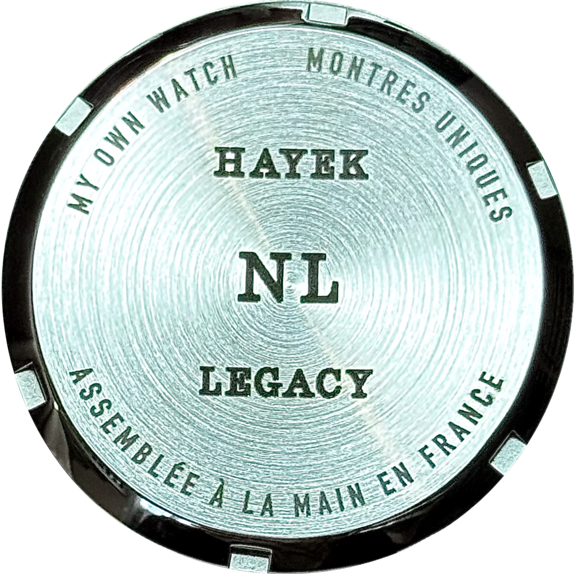 Vus pouvez choisir entre un fond plein et un fond transparent. Votre calibre est dans tous les cas décoré d'une masselotte cotes de genève bleue, signature de My Own Watch.