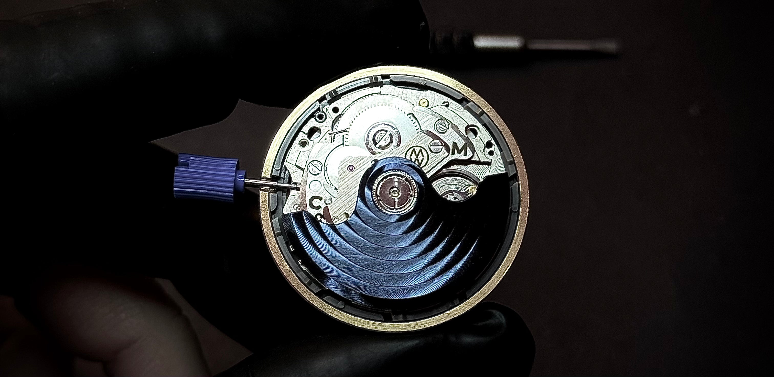 Nos montres sont équipées du mouvement MW-JA01 ou MW-JG01 (GMT), mouvement automatique Japonais modifié, décoré et réglé en interne (-10s/+10s dans les conditions de l'atelier).